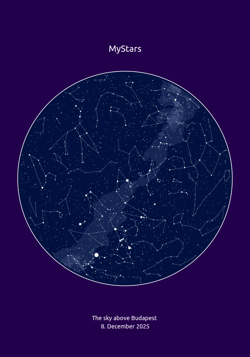 Itt tudod beállítani csillagtérképed méretét, elrendezését, a szövegek és képek elhelyezkedését. Ahogy módosítod a beállításokat az előnézeti kép rögtön változik.